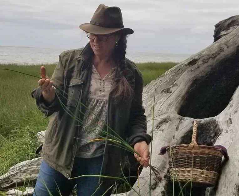 Karen Magnuson-Sherwood, a skilled basket maker and wildcrafter who teaches workshops on creating containers from foraged materials, often under names like "The Forager's Basket," focusing on natural fibers, wilderness survival skills, and ethnobotany for organizations like The Folk School Fairbanks, Washington Outdoor Women and Earth Walk Northwest.